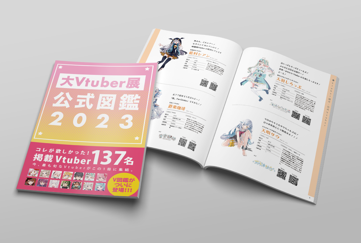 人気VTuberのプロフィールを紹介する図録を制作。ファンにとって見やすく、楽しめるデザインを採用し、大変好評を博しました。